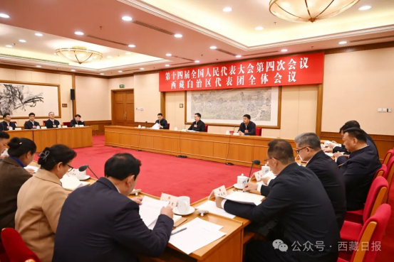 3月3日下午,十四届全国人大四次会议西藏代表团在驻地召开第一次全体会议。自治区党委书记王君正主持并讲话。